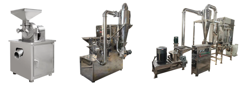 Firstly, the food ingredients need to be dried by natural sunshine or specific drying machine. Then grinder machine will be used to grind the dried ingredients into powder. For example, spice powder, leaf powder, grain powder, etc are made in such workmanship. Certainly, different types and models of grinder machines are in supply to meet different production requirements.